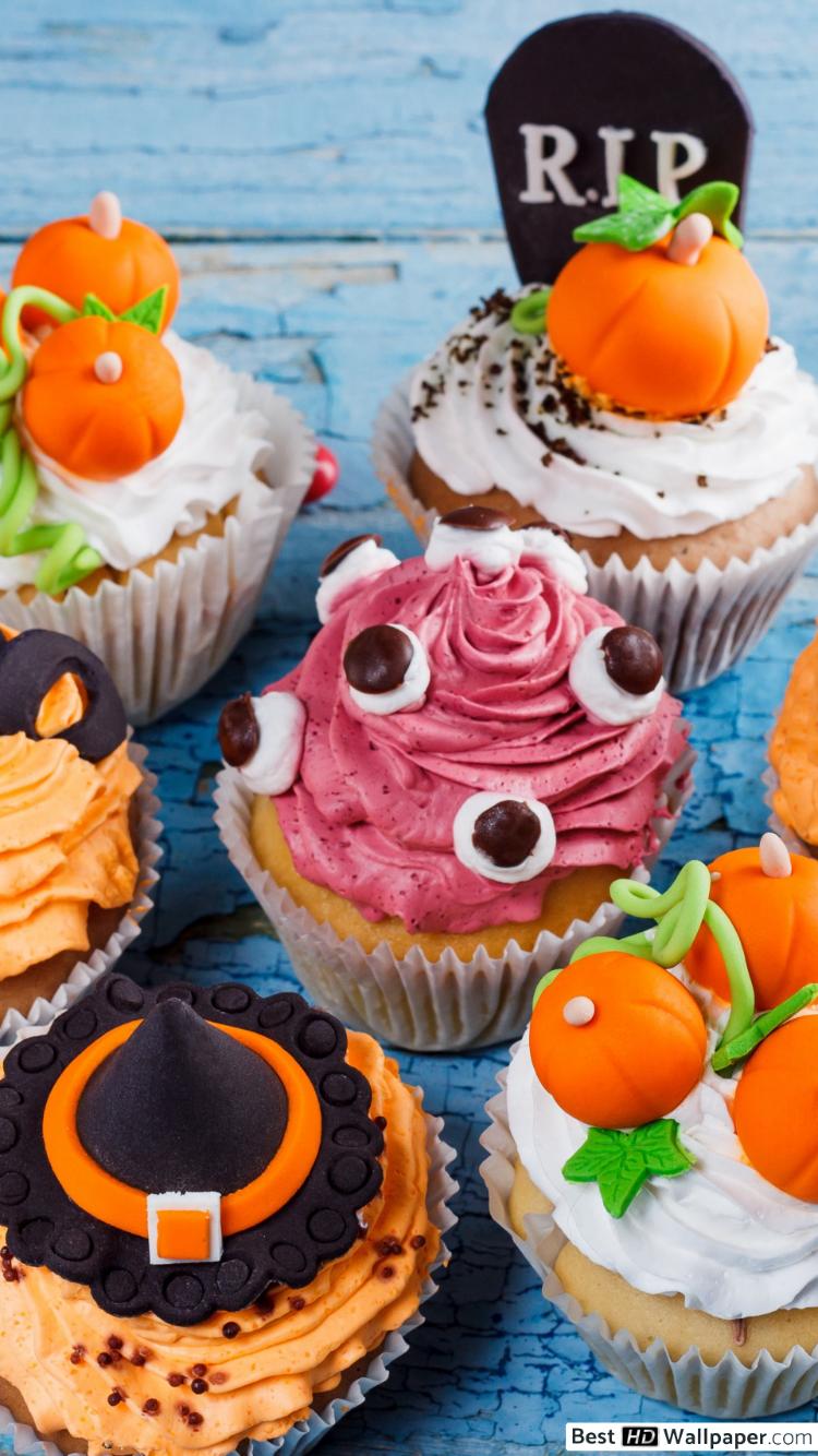 Discover an amazing halloween cupcakes background image, ideal for personalizing your devices with vibrant colors and intricate designs.
